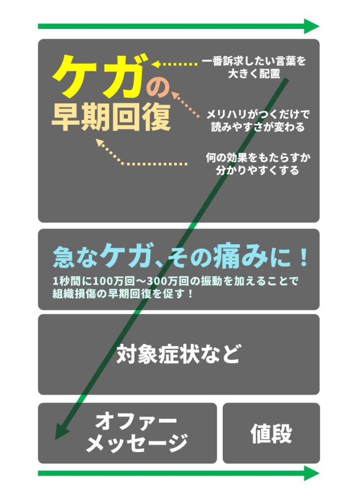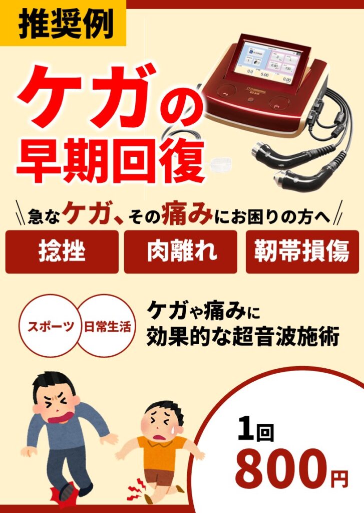 電療などの機器は、”具体的な説明”よりも”対象の症状”を明確に訴求しましょう。機器の効果や凄さを知りたいのではなく、「自分に効果あるのか?」を知りたいわけです。